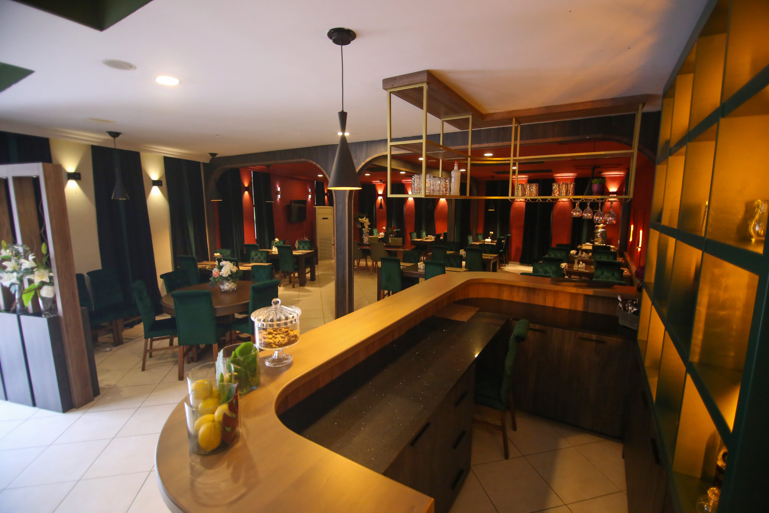 Restoranın atmosferi sıcak ve davetkar bir ortama sahiptir. Yemeklerinizi lezzetli yiyeceklerle birlikte keyifle yiyebileceğiniz hoş bir ortam sağlanır.